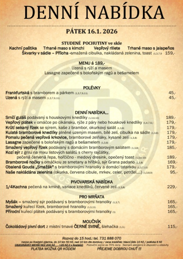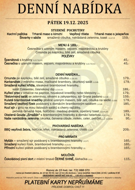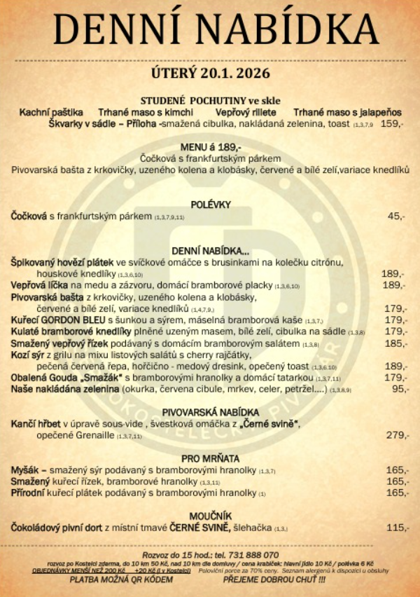 Ochutnejte to nejlepší z domácí kuchyně naší pivovarské hospody.