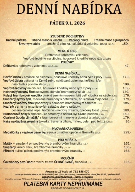 Ochutnejte to nejlepší z domácí kuchyně naší pivovarské hospody.