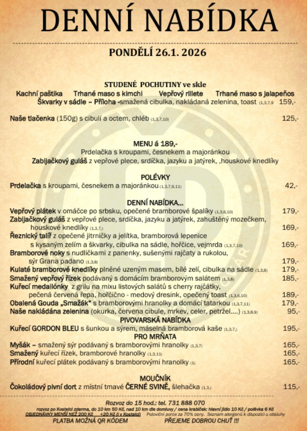 Ochutnejte to nejlepší z domácí kuchyně naší pivovarské hospody.