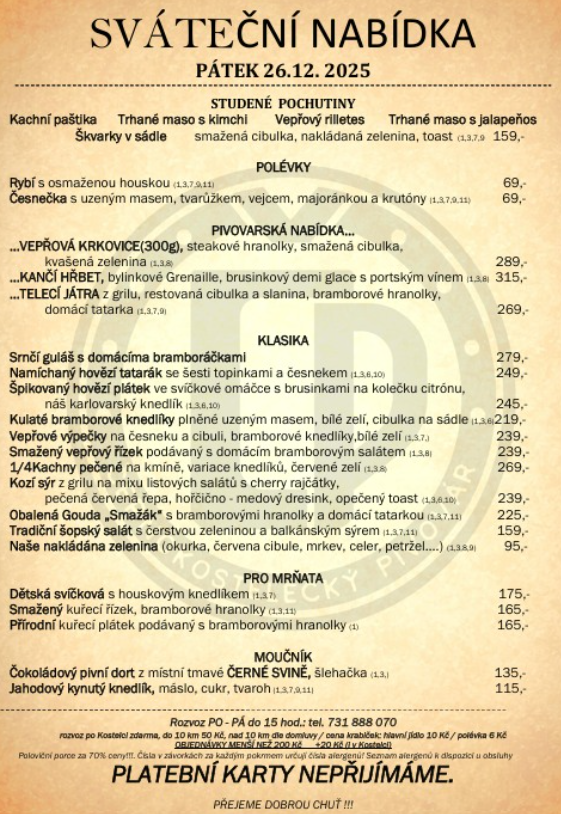 Ochutnejte to nejlepší z domácí kuchyně naší pivovarské hospody.