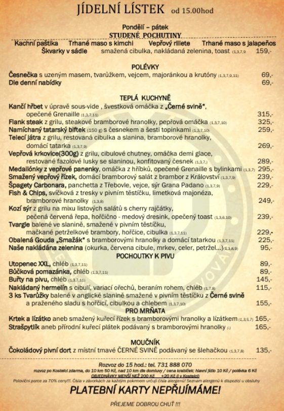 Denní menu platné Po-Pa do 15:00 hodin. Jídelní lístek platné Po-Pa od 15:00 hodin.