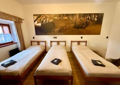 Jasně, každý by chtěl bydlet v pivovaru! U nás si to můžete odzkoušet. Nově nabízíme moderní avšak stylové ubytování ve dvou a vícelůžkových pokojích s vlastní sociálkou a naše pokoje se jmenujou bednárna, varna, strojovna, lahvárna, žentour, máčírna, šrotovna, chmelárna a valečka. Představte si to povalování na valečce či jaké to musí být poetické probuzení na šrotovně, když jste šli spát na šrot.